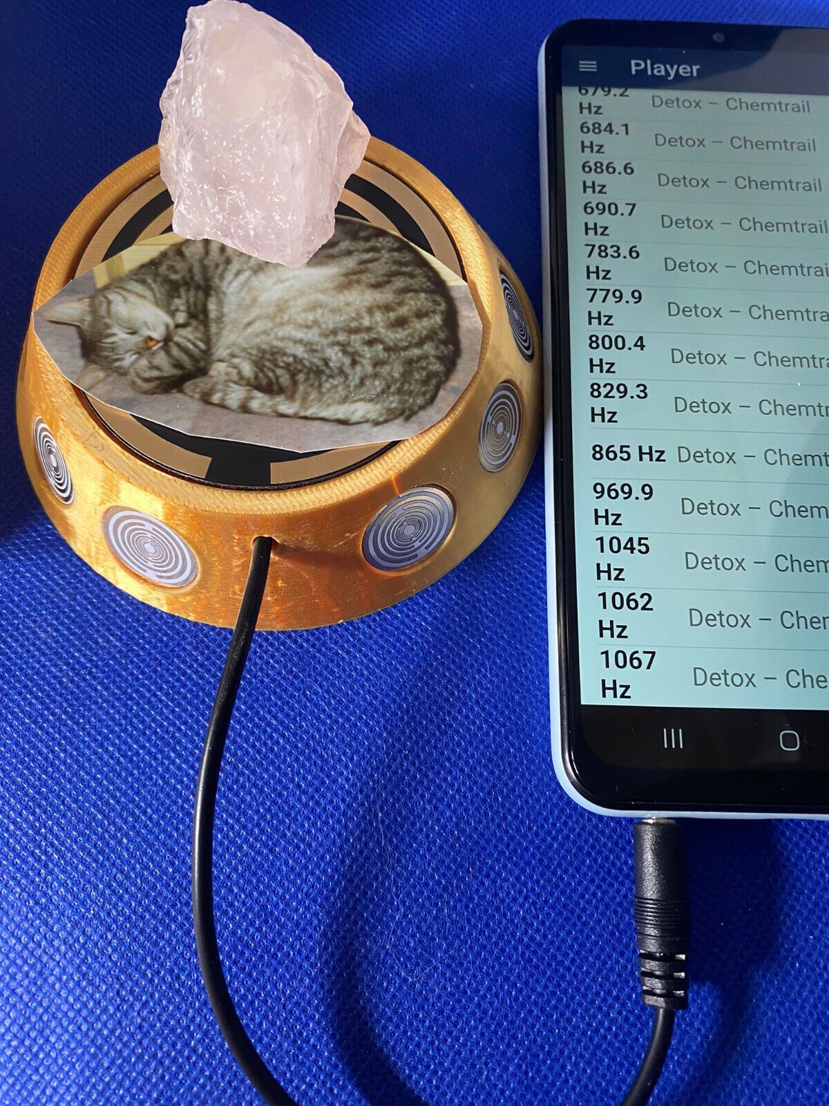 Die VibraNex könnte dein radionisches Tool sein, das persönlich, individuell ausgewählte Frequenzen aus z.B. Apps, YouTube, Webseiten per Audiovia z.B. Handy, PC, Laptop, mp3 Player auf sämtliche Gegenstände übertragen könnte.